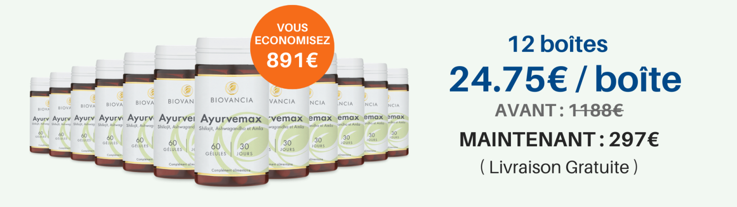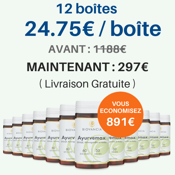 Ayurvemax combine 3 actifs qui contribuent à maintenir l’équilibre doshique, point de départ de l’harmonie entre le corps et l’esprit : le shilajit, l’ashwagandha et l’amla.