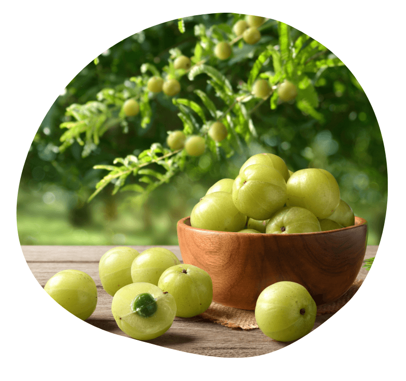 L‘Amla (ou amalaki) est le fruit de l’Emblica officinalis, également connu sous le nom de groseillier de Ceylan, un arbre tropical originaire d’Asie du Sud-Est.