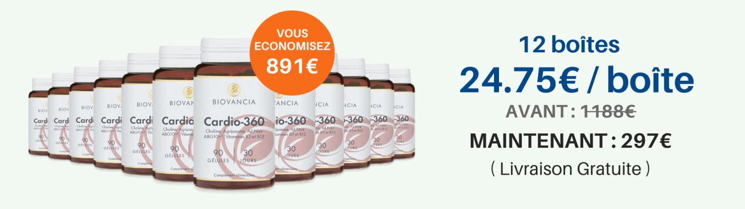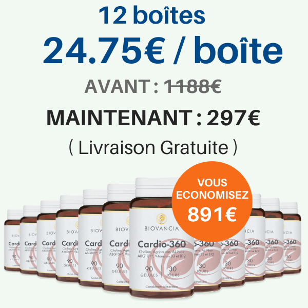 En prenant CARDIO-360 chaque jour, vous obtenez ces 5 actifs dans une version pure et concentrée : c’est le geste le plus simple et le plus sûr pour soutenir le fonctionnement de votre coeur et de vos artères.