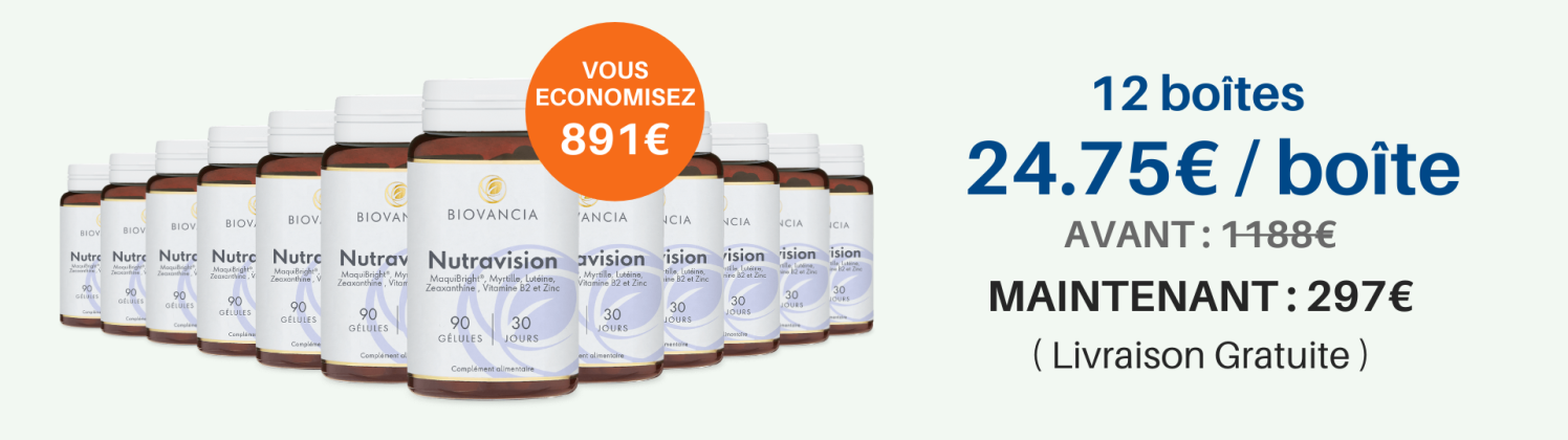 Bientôt plus de lunette pour la lecture ! J'ai commencé la cure NUTRAVISION, il y a un mois, je constate une amélioration de ma vision de près (presbytie âge 53 ans). Je pense qu'il me faudra encore quelques mois pour me séparer de mes lunettes de lecture.