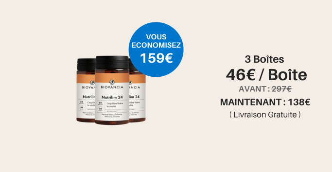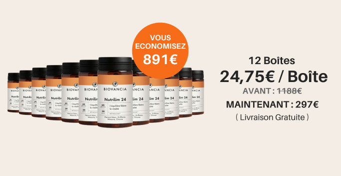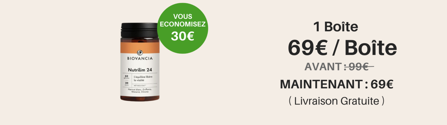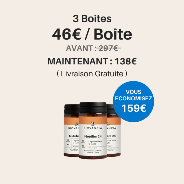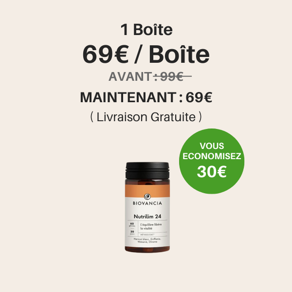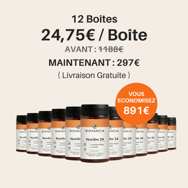 Nutrilim-24 est une innovation de Biovancia qui agit en synergie sur deux leviers majeurs du métabolisme après 50 ans : le surpoids et la résistance à l’insuline.