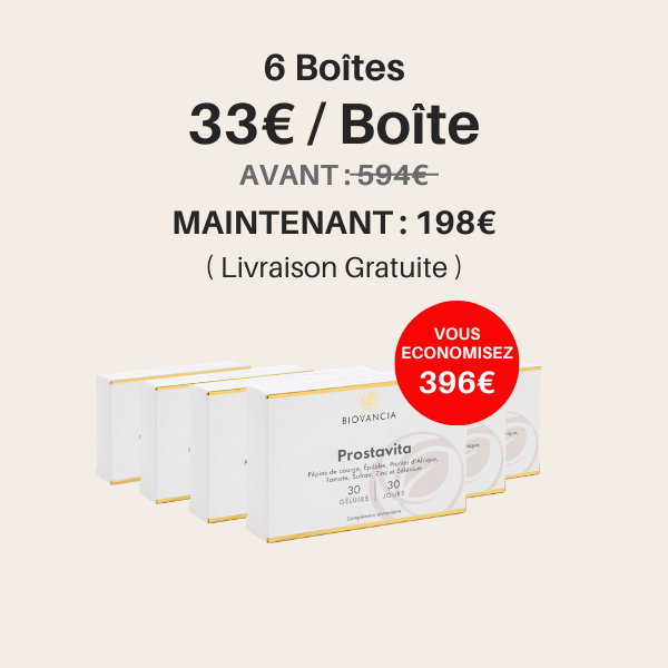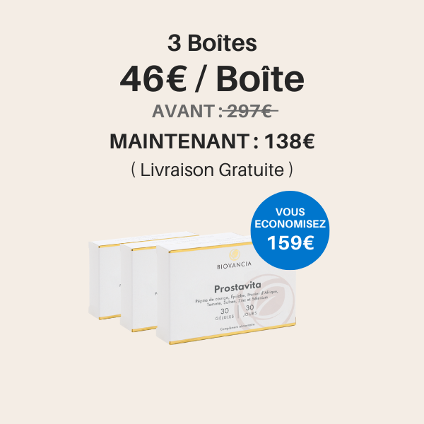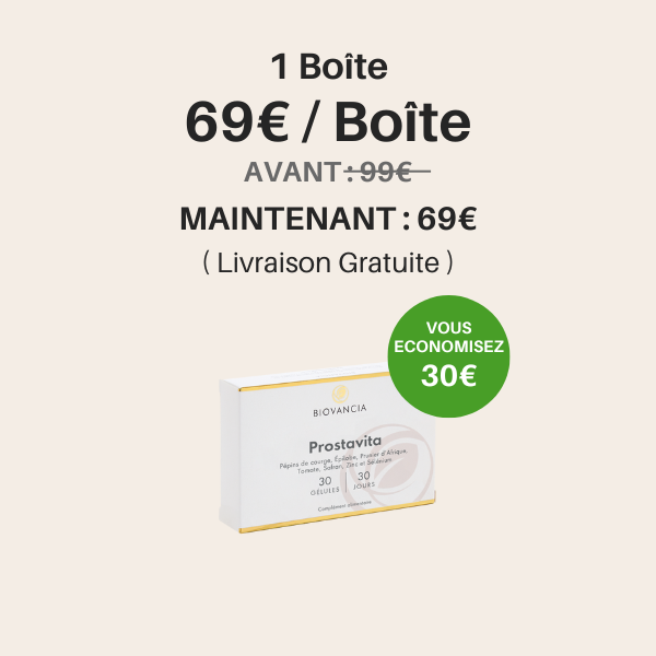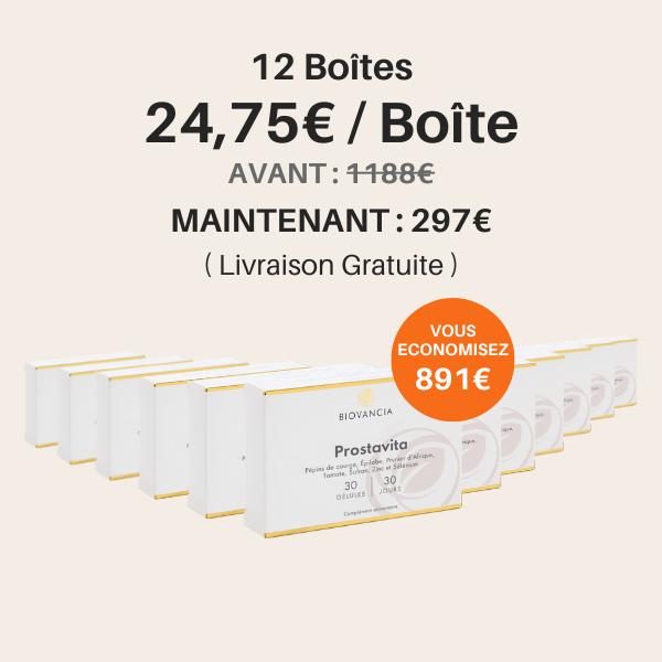 PROSTAVITA est une formule conçue pour répondre à tous les défis de la prostate après 50 ans : confort urinaire, vie sexuelle, protection cellulaire.